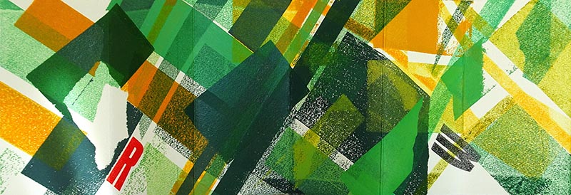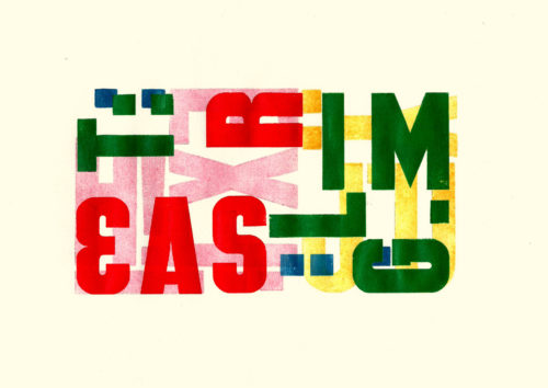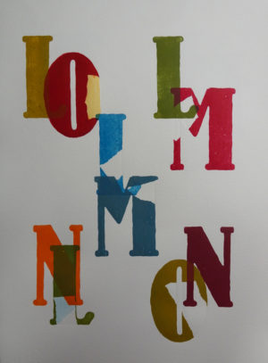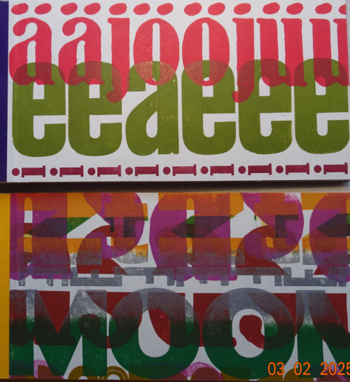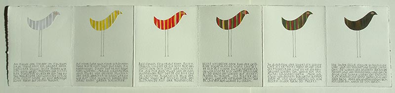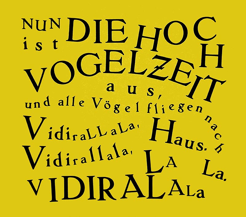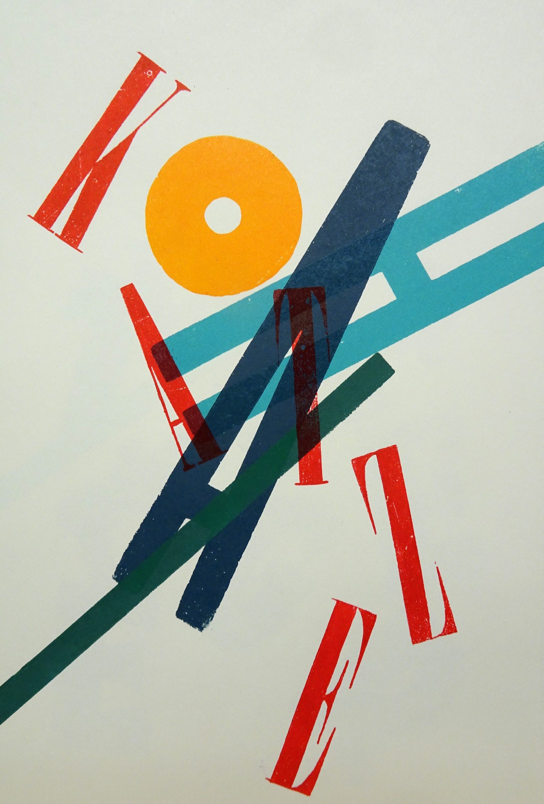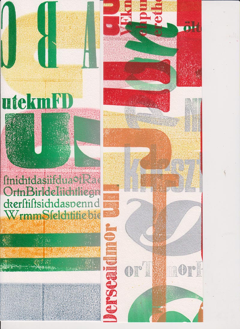 Druck: Mehrfarbiger Buchdruck in typografischer Gestaltung auf 230g-Hahnemühle-Bütten