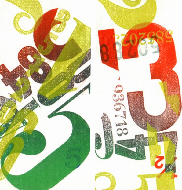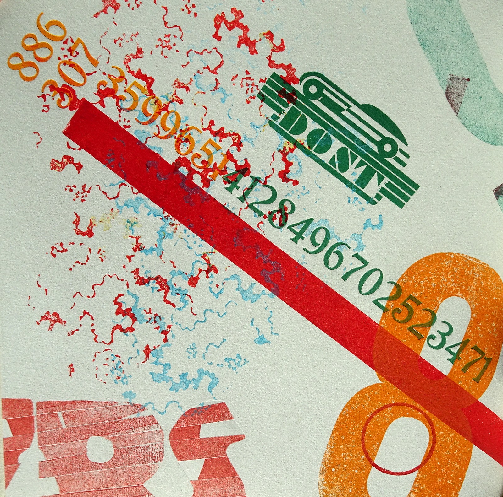 Druck: Mehrfarbiger Buchdruck auf Rigips-Papier