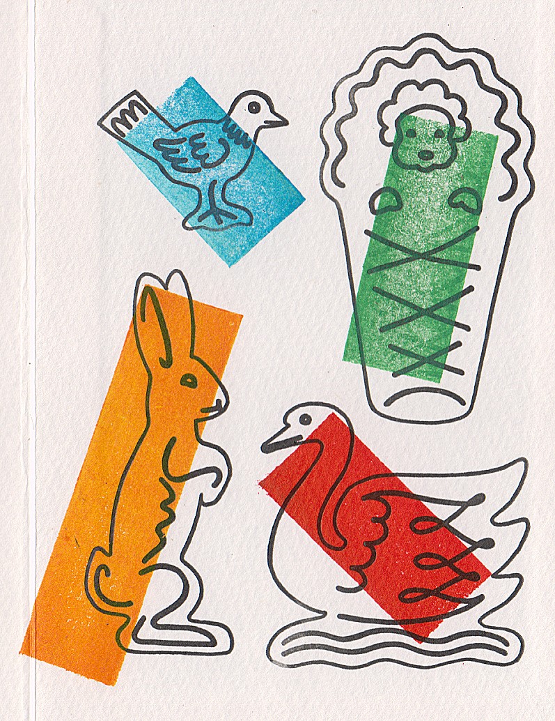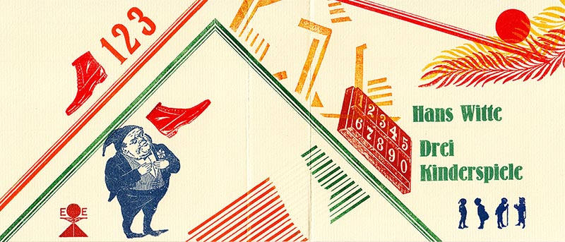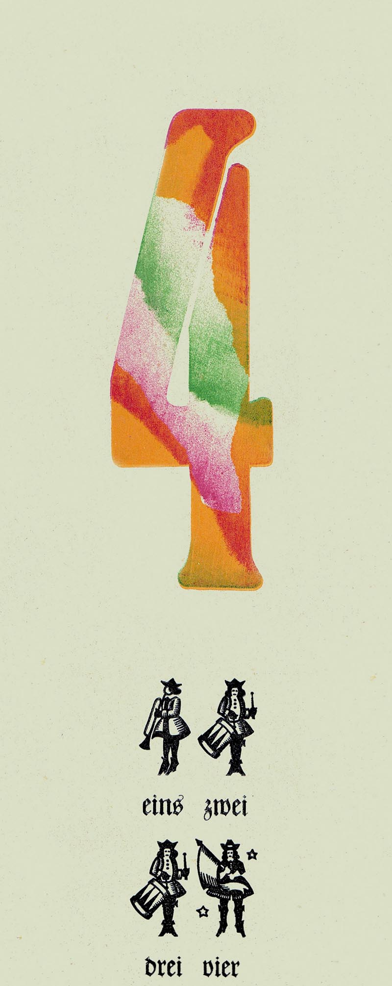 Druck: Mehrfarbiger Buchdruck auf unterschiedlichen Papieren. Teilweise Schablonendruck und Handkolorierung
