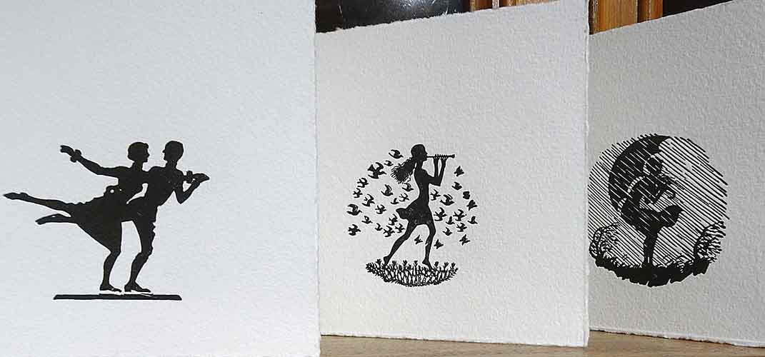 Druck: Buchdruck von alten Bildklischees in Schwarz auf Bütten